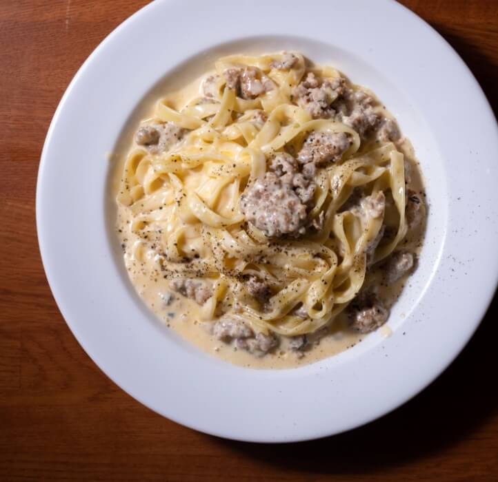 テリーヌ、トリッパの煮込み、生ハムのせサラダなど、お酒との相性抜群のメニューをご用意しております。夜ご飯は、カルボナーラ、ジェノベーゼなど人気のパスタ、リゾットがおすすめ。
